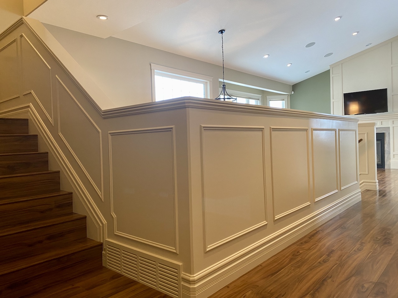 This work was completed in a fully finished home while the owners were on holidays. They wanted to dress up the main floor and bring some character into a fairly recently built home.