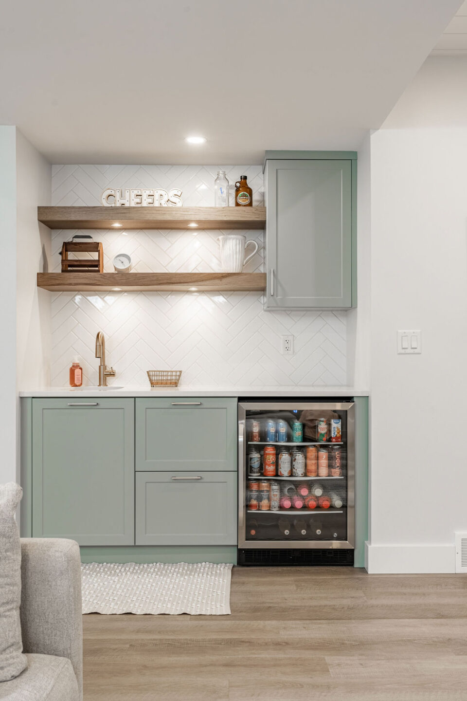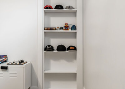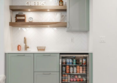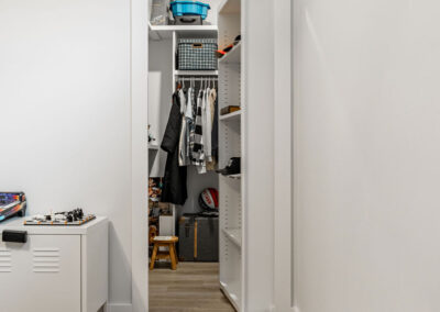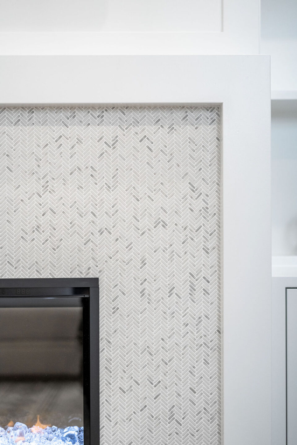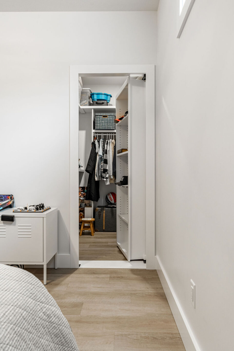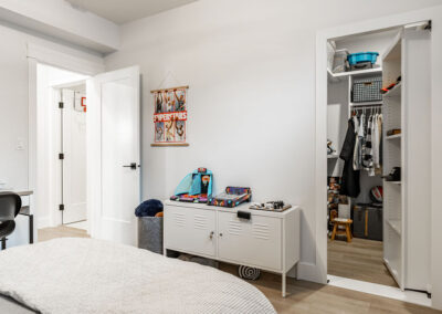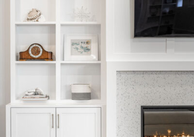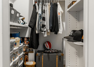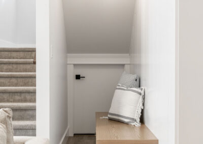 Basement development included a bright and spacious entertainment room, with a mirror and rail for dance practice, wet bar and mini fridge, fireplace and television above custom built-in mantle. Also an additional bedroom with a secret closet and stylish bathroom to complete the space.