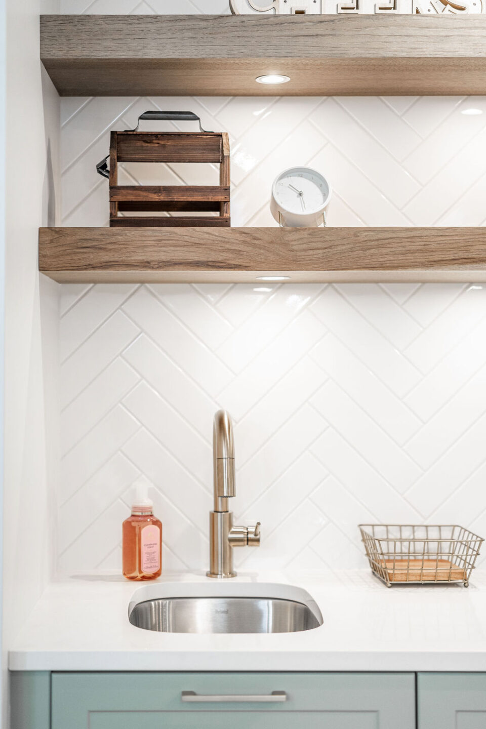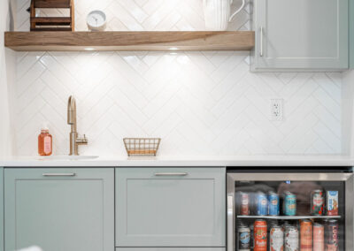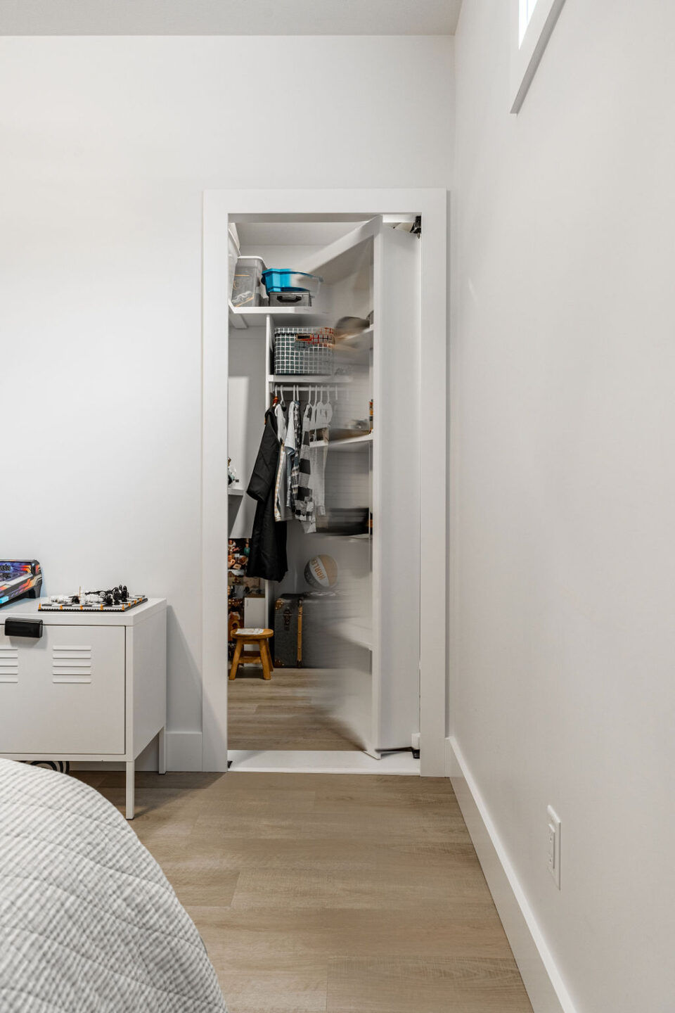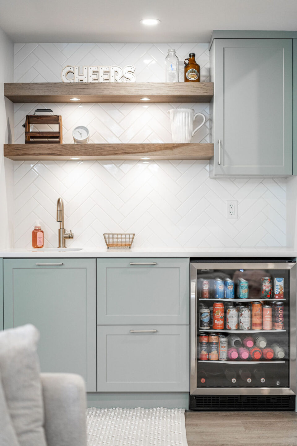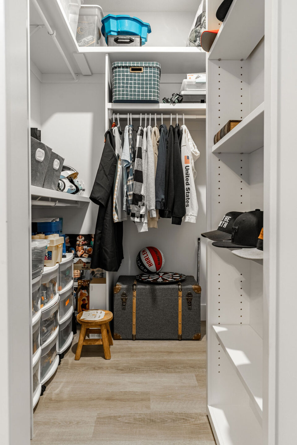 Basement development included a bright and spacious entertainment room, with a mirror and rail for dance practice, wet bar and mini fridge, fireplace and television above custom built-in mantle. Also an additional bedroom with a secret closet and stylish bathroom to complete the space.