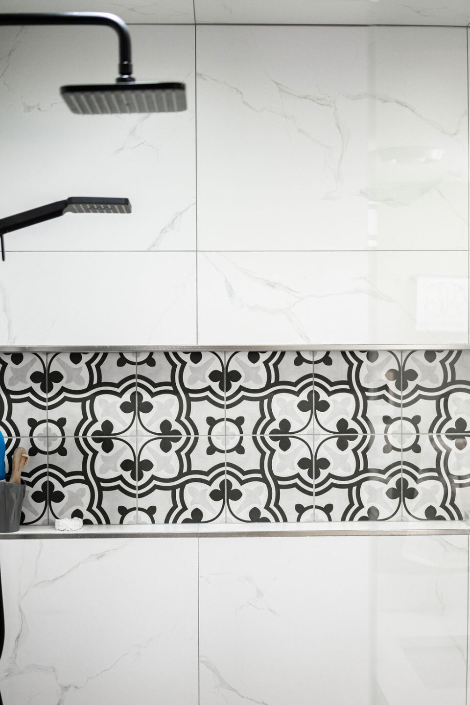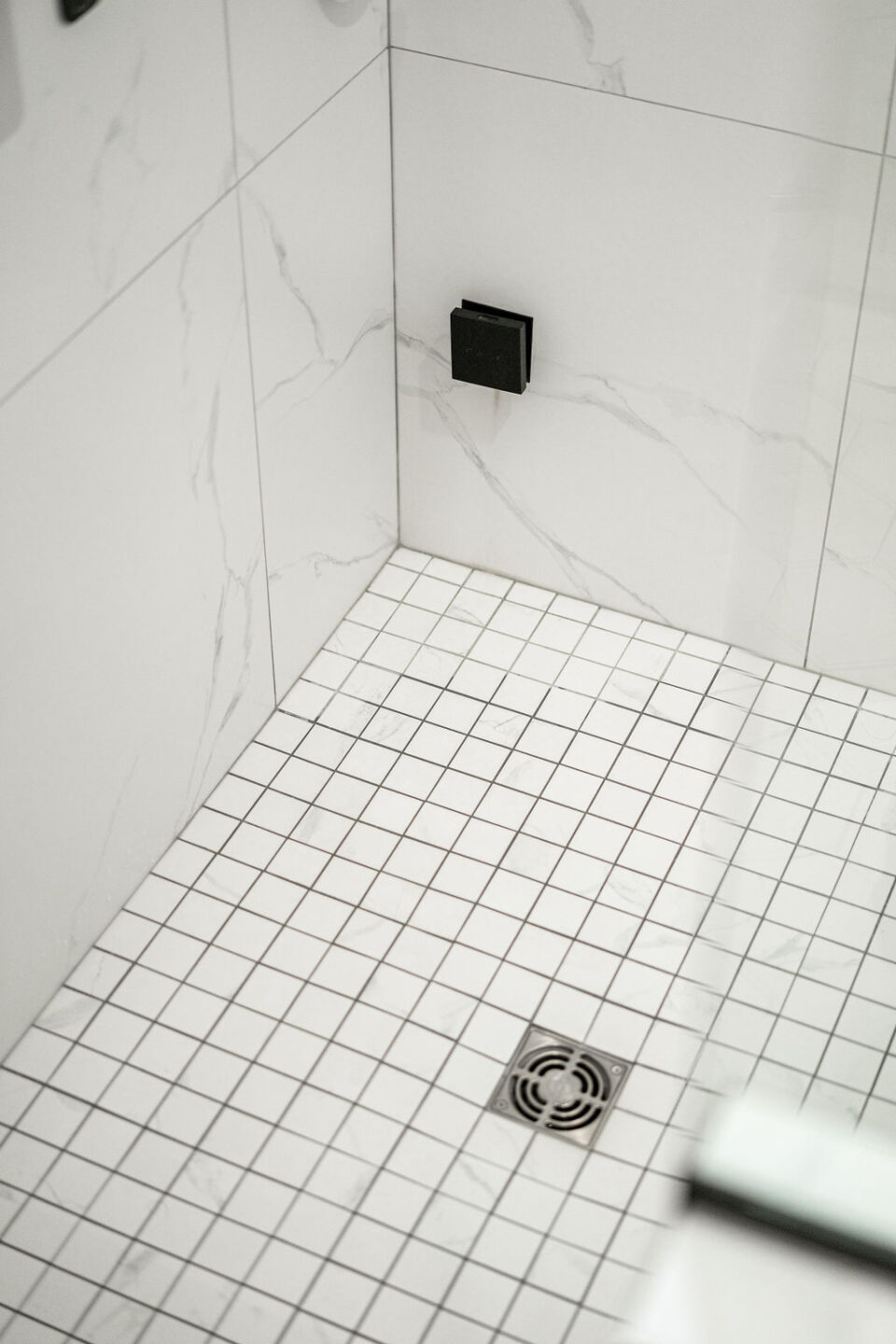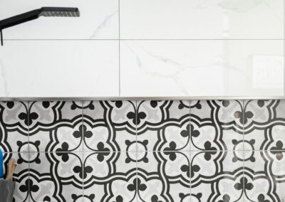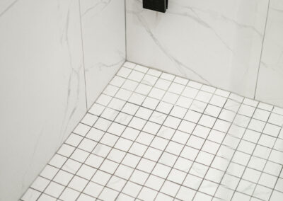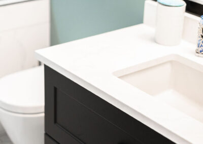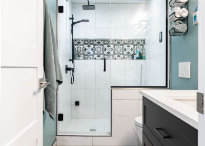 The aim of this entire project was to create a cozy space, and it was important that the floors did not have the “cold basement” feel. To achieve this we included the QuikTherm Insulated Warm Floor panels throughout the living area and electric floor heat under the tile in the bathroom. We also used the QuikTherm tongue & groove foam insulation panels on the foundation walls, which replaces the traditional batt & poly system and provides a radon barrier as well as thermal barrier values that exceed the National Building Code.