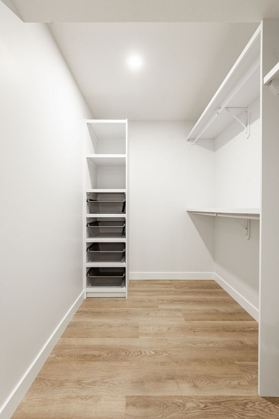 The challenge was fitting all these details into a fairly small footprint, while also keeping it open and spacious. Incorporating barn doors into the bedroom and closet helped to keep the space functional as well as sleek and modern.
